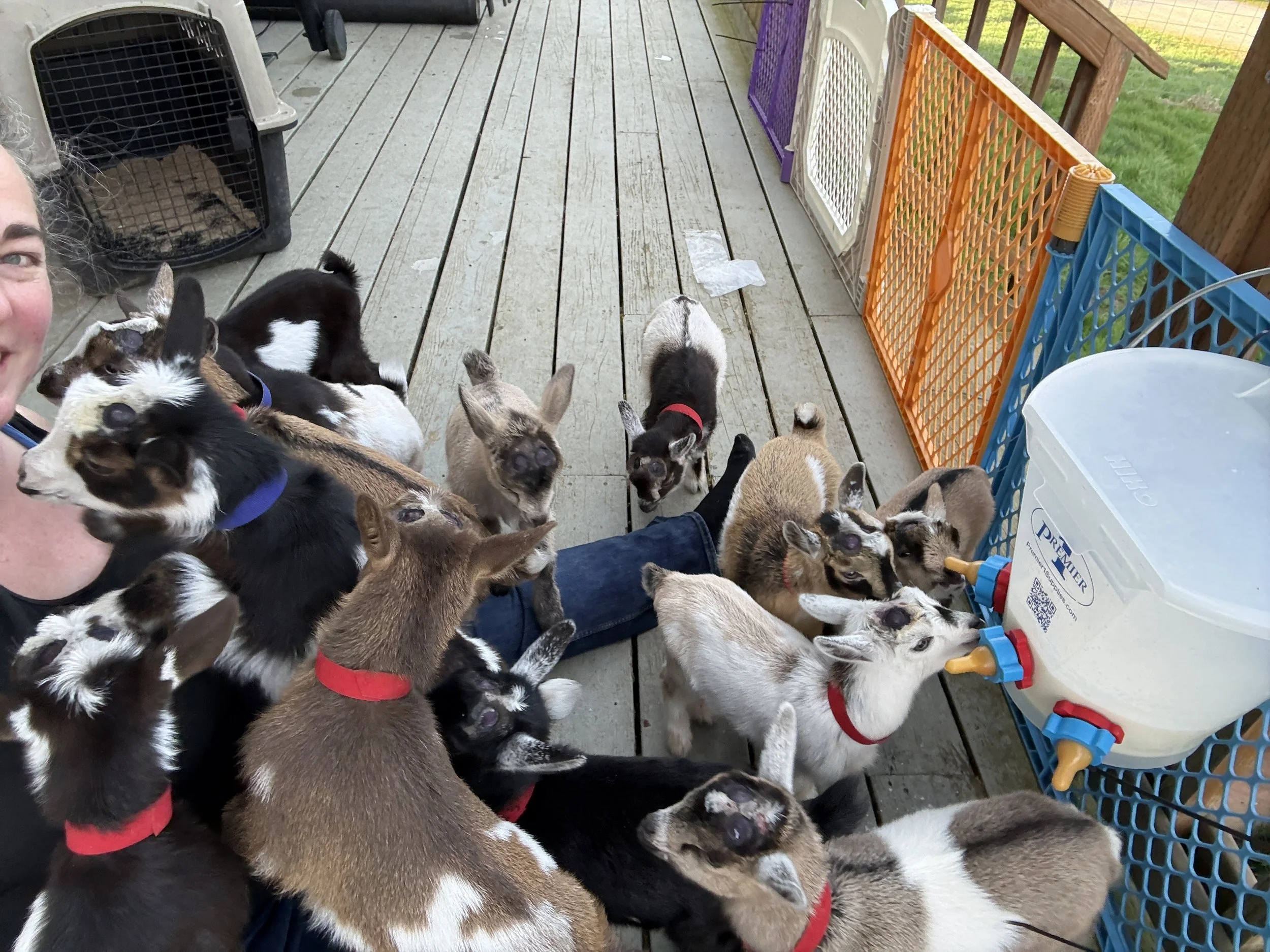 Like most things on the farm, how I raise kids has been an evolution. I’ve dam‑raised and hybrid‑raised, and each method has its own pros and cons. But bottle raising from the start—while absolutely the most labor‑intensive—has become the approach that feels right for me. It’s hands‑on in a way that leaves no room for shortcuts. I get to know their personalities: who’s independent, who’s the instigator, who hangs back and watches before joining in, who naturally settles into a lower herd order, and who marches straight to the top. There is nothing quite like that level of connection.